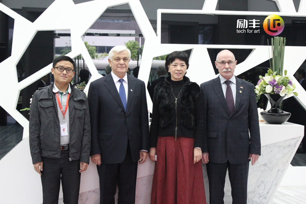 当天,白俄罗斯州长团一行在励丰文化科技高管的热情接待下参观了励丰文化科技示范基地,对基地集研发、制造、销售、工程、设计、创意全产业链的发展模式作了详细的了解。
